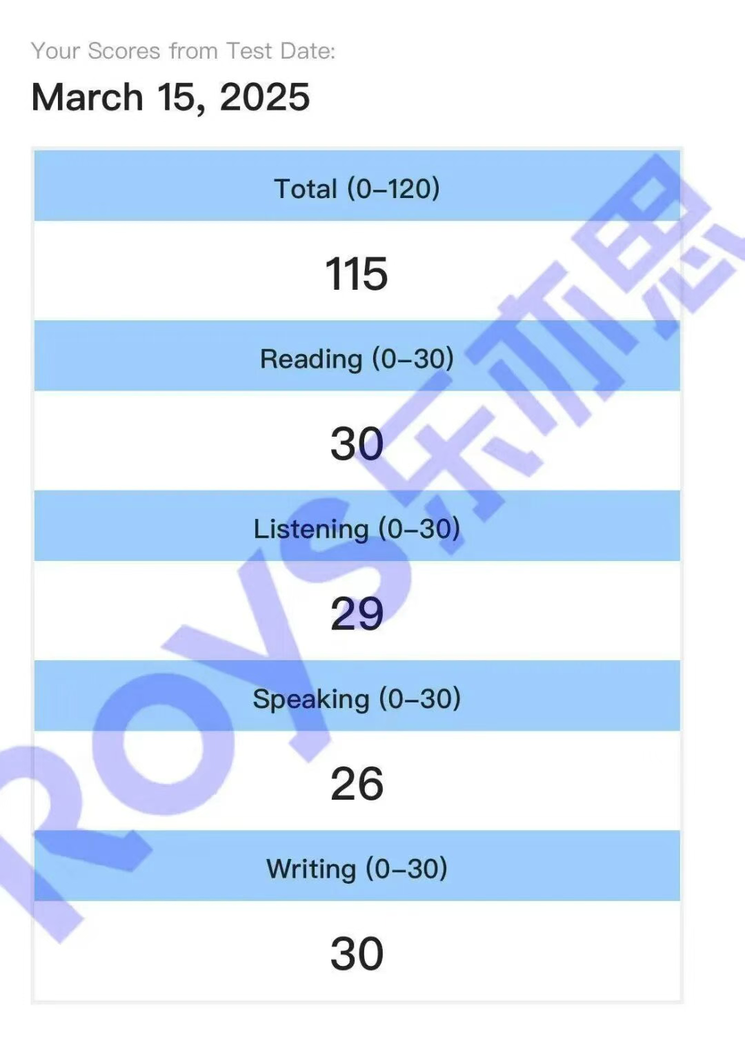 就像平和的P同學,通過保溫班銜接好了語言能力,在托福融合班+巔峰班的助力下,最后在考前通過高頻一對一+口語沖刺,成功從85分躍升至115分,整整進步了30分!