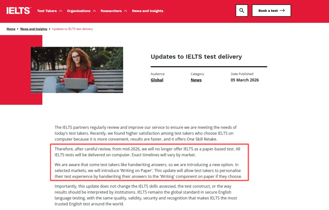 雅思考試重大變革:2026年起全面取消紙筆考試,機考時代來臨!