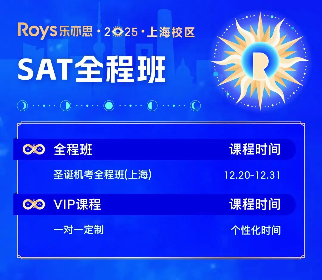 樂亦思還專門為想在圣誕節(jié)沖刺的同學(xué)開設(shè)了王牌全程班,這可是Roy老師親自授課的唯一課程哦!從零基礎(chǔ)到1550+的完整備考干貨都有,能幫“SAT全分?jǐn)?shù)段”的學(xué)生系統(tǒng)性學(xué)習(xí)。