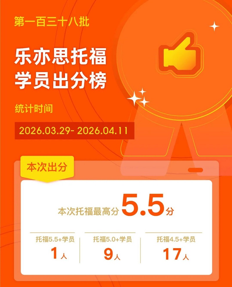 托福新題型已上線三個多月,我們的學員也在不斷持續(xù)出分!就在近日,樂亦思托福再次發(fā)布最新出分榜,不僅有9年級學員在短短8天內(nèi)速通5.0分,更有12年級學員10天達標5.5分,還有多位11年級學員在新題型首考中一舉突破5.0+大關!