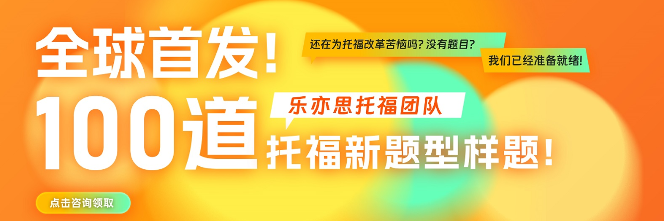 除了這些官方資料,樂亦思的托福團隊還針對托福改革發布了最新100道托福新題型樣題,點擊樂亦思在線咨詢窗口即可領取。