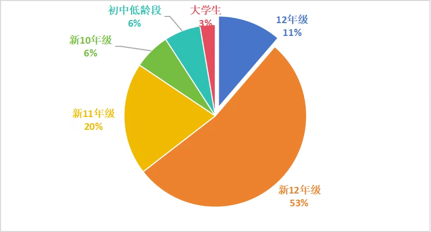 在這些高分學員中,53%來自新12年級,20%是新11年級的同學,甚至還有6%的新10年級同學也加入了這一行列。越來越多的低年級同學選擇更早地接觸托福,通過學習集訓和參加考試,拿下理想分數,從而掌握語言和時間上的雙重優勢。在托福100+分段中,年齡最小的是一位新7年級同學,他斬獲了111分的高分!